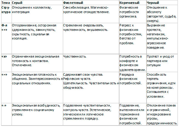 —0 —5 (серый и фиолетовый) — напряжение в связи с подавлением чувственных переживаний.
